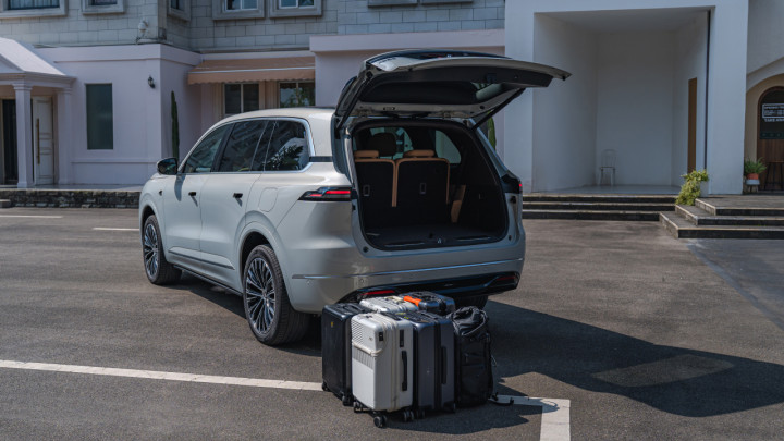 427L的容积即使在六座满员的情况下也能轻松容纳5个20寸行李箱,而后备箱隐藏盖板下还有44L的额外空间,恰好可以放下第六人的行李箱。这种设计细节体现了对深蓝S09对用户需求的洞察,不能说“六座满载结果只能有四个人的行李空间”。