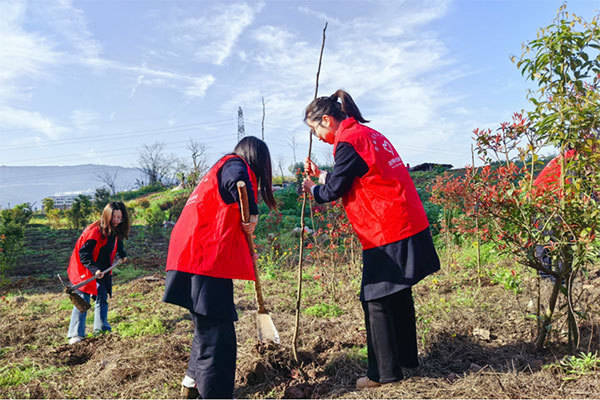 投身植树护绿环保行动。中国银行重庆市分行供图